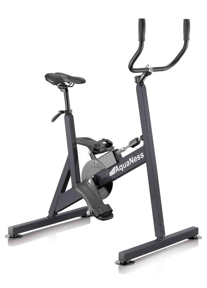 Dans tous les cas, votre aquabike est conçu pour résister à une immersion prolongée. Roulements à billes protégés par des bagues d’étanchéité, cadre en acier inoxydable, souvent complété par un traitement anticorrosion supplémentaire afin de mieux résister encore aux effets de l’eau chlorée.