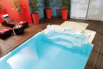 Ils ont donc créé des escaliers en polyester intégrant directement un spa. Doté d’un système de chauffage de l’eau spécifique, il pourra même être débordant dans la piscine. Et pourquoi pas, pour certains modèles, comporter un éclairage spécifique, souvent coloré pour des séances de chromothérapie.