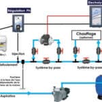 Afin d’injecter dans le bassin l’eau la plus saine possible, l’installation de l’électrolyseur au sel se fera toujours en aval de tous les autres équipements de votre local technique. Il sera donc positionné juste avant les canalisations menant aux buses de refoulement.