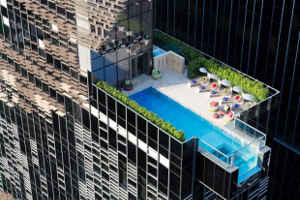 Une autre piscine qui défie les lois de la gravité, celle de l’hôtel The Joule.