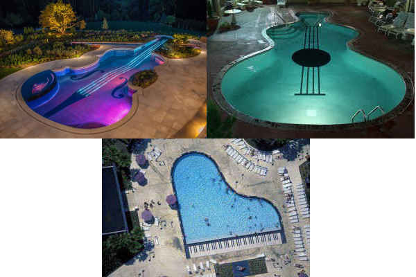 Je vous présente donc,dans le thème musical, la piscine violon, la piscine guitare et la piscine piano.