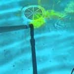 Les fuites sous-marines dans la coque ou les raccords de la piscine peuvent être identifiées avec un test de teinture.